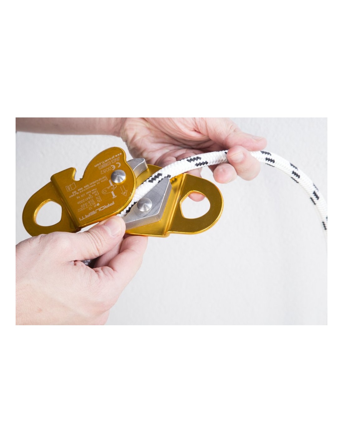 Urządzenie samozaciskowe przesuwne AC 080 do stosowania z liną roboczą AC 300 - poliestrową o średnicy 12 mm. Urządzenie należy łączyć z szelkami bezpieczeństwa za pomocą zatrzaśnika owalnego, np. AZ 011. Urządzenie AC 080 jest składnikiem indywidualnego sprzętu chroniącego przed upadkiem z wysokości.