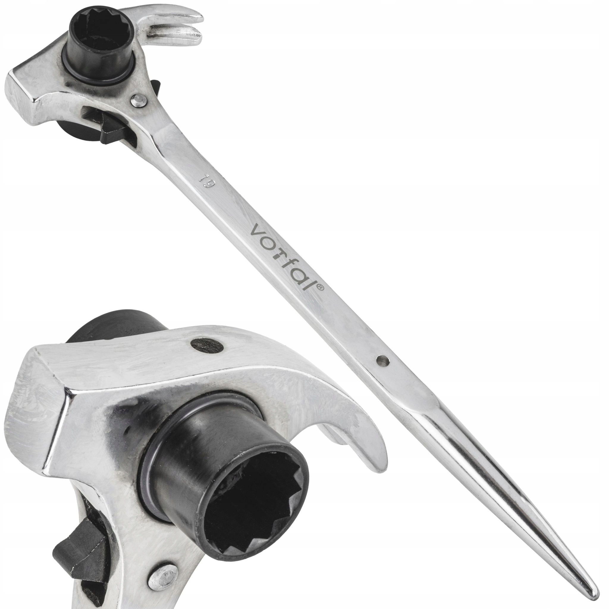 Specjalnie wyprofilowana konstrukcja narzędzia sprawia, że jego obsługa jest bardzo wygodna. Zaostrzona końcówka jest szczególnie przydatna podczas podważania i rozsuwania demontowanych elementów. Długie ramię klucza nadaje się do odkręcania zapieczonych miejsc.