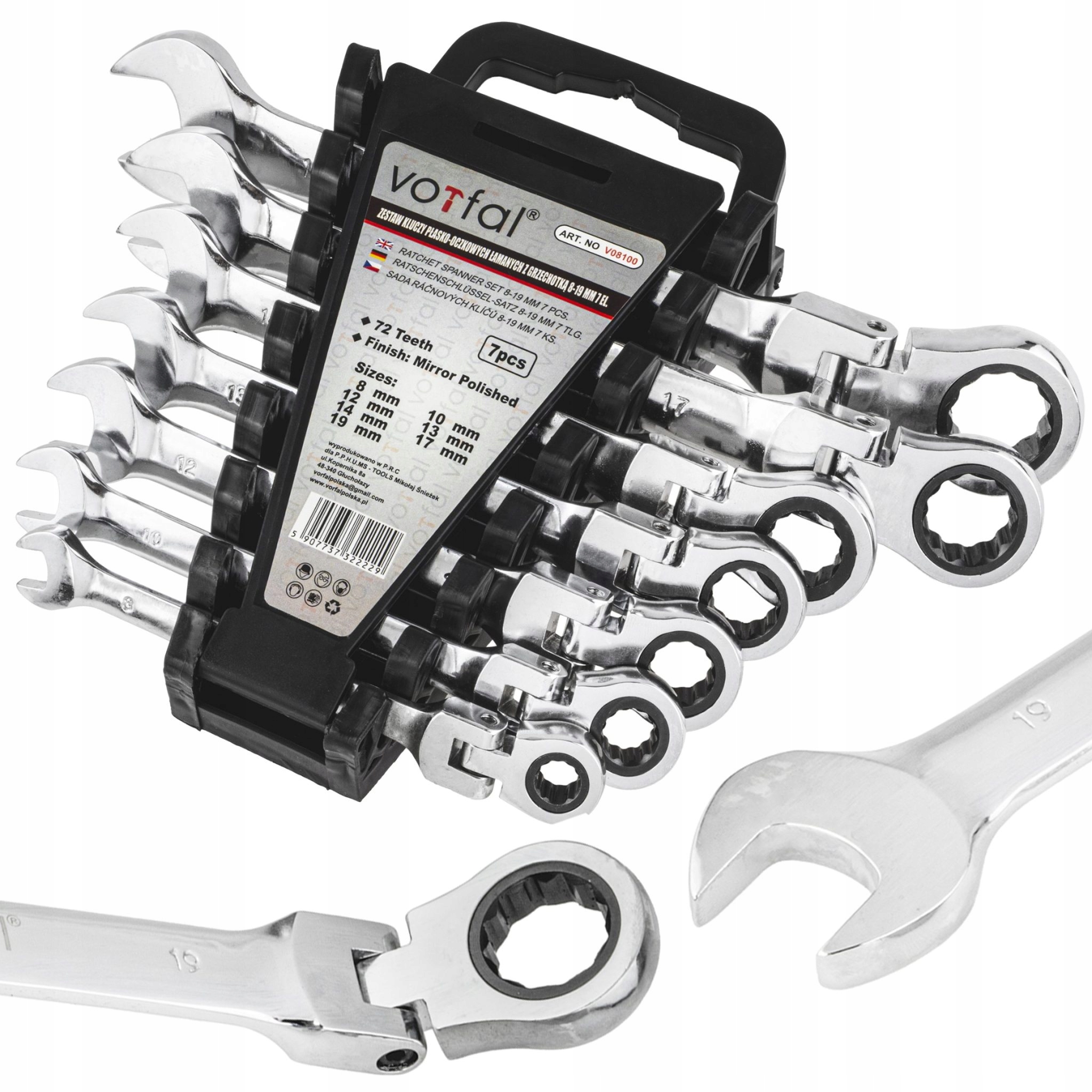 ZESTAW KLUCZY PŁASKO - OCZKOWYCH ŁAMANYCH Z GRZECHOTKĄ 7 ELEMENTÓW / 8 MM - 19MM